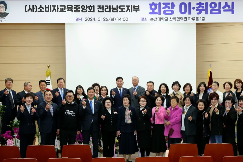 이날 행사는 명창환 전남도 행정부지사, 정병회 순천시의장을 비롯해 소비자교육중앙회 전남지부 이송자 이임회장, 신애란 취임회장과 22개 시군 지회장 등 200여 명이 참석했다. 개회 선언과 감사·공로패 전달, 임명장 수여와 취임사, 축사 순으로 진행됐다.