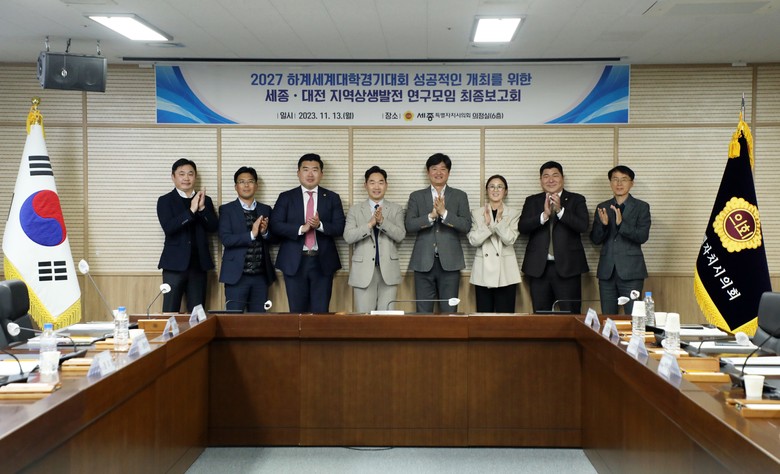 [세종 세계타임즈=이채봉 기자] 세종특별자치시의회(의장 이순열) ‘2027 하계세계대학경기대회의 성공적인 개최를 위한 세종·대전 지역상생발전 연구모임(대표의원 김현미, 이하 연구모임)’은 13일 오후 16시 세종시의회 의정실에서 제5차 간담회를 끝으로 활동을 마무리했다.