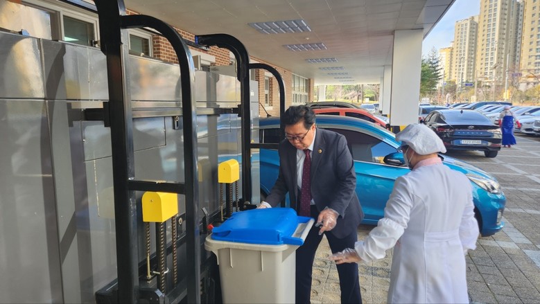 [경남 세계타임즈=최성룡 기자] 경상남도의회 교육위원회 허용복 부위원장(국민의힘, 양산6)은 8일 양산 가남초등학교와 하동 진교중학교를 방문, 학교 급식소에 설치된 음식물쓰레기 처리기(이하 ‘처리기’)의 운용실태를 점검하며, 이에 대한 앞으로의 정책적 방향에 대해 교육청 및 학교 관계자들과 논의하였다.