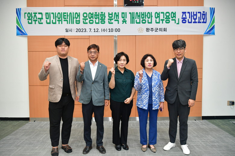 이에 함께 배석한 감사부서에서는 2023년 행정사무감사 지적한 민간위탁사문 수탁기관에 대한 소관부서의 지도·점검 업무가 미흡하다는 지적사항에 대해 ‘완주군 민간위탁사무 관리지침’에 따라 수탁기관에 대한 소관부서의 자체 지도·점검 실시 중이라고 밝혔다.