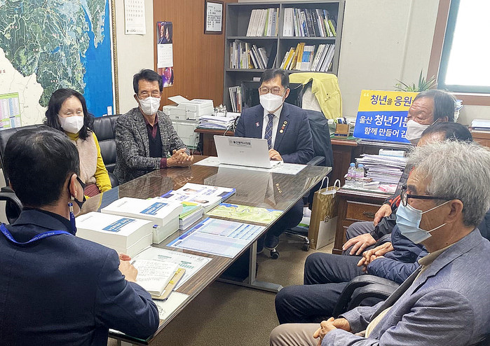 [울산=세계타임즈 이호근 기자] 울산시의회 윤덕권 의원은 25일 오후 1시 윤덕권 의원실에서 청량읍 양동마을 이장 등 주민들과 시청 관계자가 참석한 가운데 옥동 군부대 이전 추진에 대한 주민들의 입장 전달과 피해 대책 마련 등을 위한 민원청취 간담회를 가졌다.