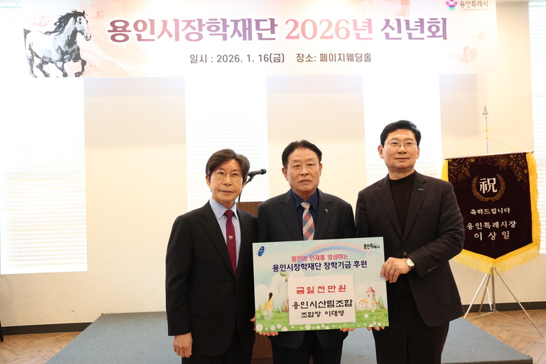 이날 행사는 용인시장학재단 신년회로 자문위원으로 활동 중인 이대영 조합장이 대표로 이상일 시장에게 장학금을 전했다.