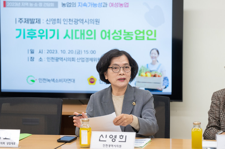 토론회 발제자인 신영희(국·옹진) 시의원은 “여성농업인은 전 세계적으로 농업의 핵심 구성원으로, 기후위기 시대에 생태계 보호와 생물 다양성 유지, 지속가능한 농업 실천을 선도하고 있다”며 친환경 소규모 농업 정책과 소비자의 친환경 지역농산물 선호를 통한 여성농업인 지원의 필요성을 강조했다.