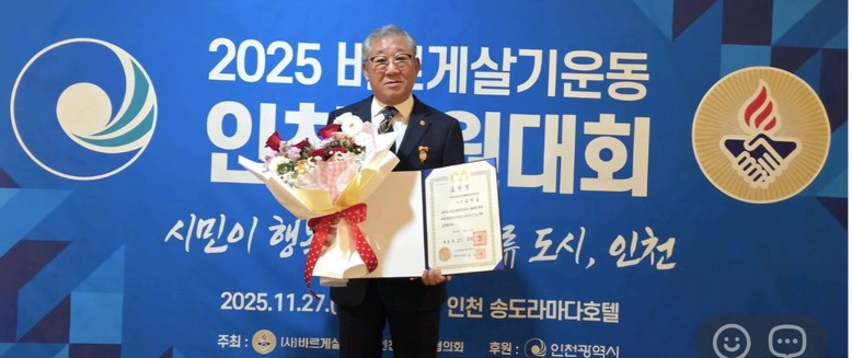 김철호 회장은 “옹진군 회원들과 함께 실천해 온 작은 봉사들이 큰 평가를 받게 되어 더욱 감사하다.”며 “앞으로도 바르게살기운동의 가치가 지역 곳곳에 스며들 수 있도록 최선을 다하겠다.”고 수상 소감을 밝혔다.