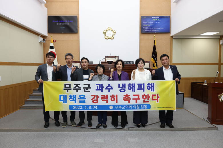 앞서 무주군의회 의원들은 냉해 발생 후 피해현장을 방문하고 많은 주민, 농민단체와 대화했다. 이 과정에서 농작물재해보험 개선을 비롯한 냉해 피해보전 제도화 등에 대한 민원을 청취하고 의견을 나눴다.