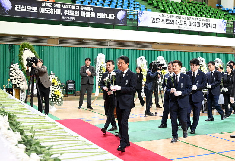 최 의장과 도의원 일동은 헌화 후 묵념으로 희생자를 기렸고, 최 의장은 조문록에 “갑작스러운 재해로 소중한 생명을 잃은 슬픔을 함께 나누며 깊은 애도를 표합니다”라고 남겼다. 이어 유가족들을 만나 위로의 뜻을 전했다.