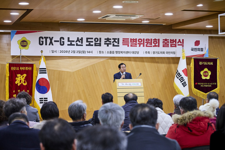 ‘경기도의회 국민의힘 GTX-G 노선 도입 추진 특별위원회’는 포천을 기점으로 경기 서북부와 서울 강남, 인천을 잇는 ‘수도권 광역급행철도 G선(GTX-G)’의 조기 도입을 효과적으로 추진하기 위해 출범했다. 경기도가 지난 2024년 ‘GTX 플러스 노선’으로 제안한 GTX-G는 포천 송우에서 의정부·남양주·구리를 거쳐 건대입구·논현·사당을 지나 KTX 광명역과 인천 숭의까지 약 84.4㎞를 연결하는 광역철도망이다. 현재 포천시를 중심으로 해당 노선의 ‘제5차 국가철도망 구축계획’ 반영이 촉구되고 있으며, 관련 논의 활성화를 위한 정부·지자체·지방의회 등 관계기관 간 협력체계 가동이 요구되는 상황이다.