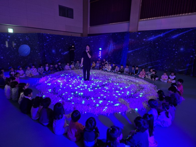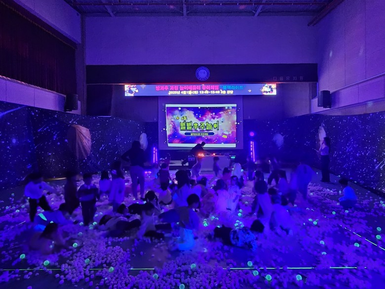 '블랙라이트 유아체험'은 3세부터 5세까지의 유아들이 참여하였으며, 별 스펀지 촉감놀이, 태양계 탄생의 비밀 알아보기, 우주 퀴즈 풀기, 형광물감으로 그림 그리기 등‘우주’를 주제로 다양한 체험 활동이 진행되었다.