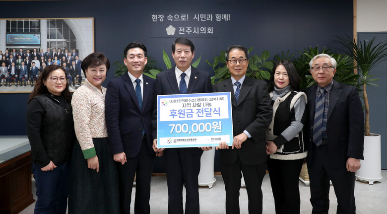 이번 기탁식에서 대한의류수선리폼협회 전북지부는 어려운 이웃을 위해 써달라며 성금 70만원을 전주시의회에 전달했다.