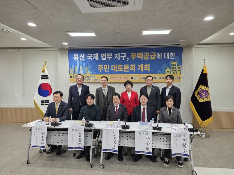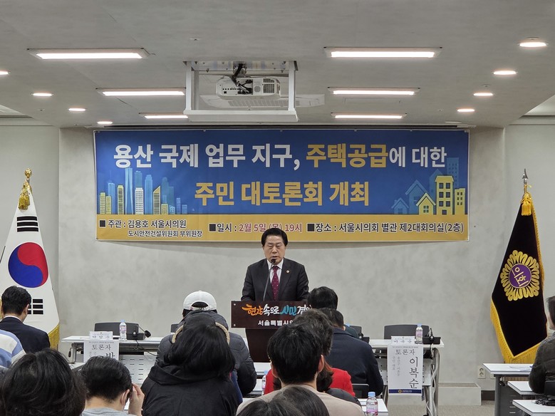 [서울 세계타임즈=이장성 기자] 서울특별시의회 도시안전건설위원회 부위원장으로 활동하고 있는 김용호 시의원(국민의힘, 용산1)은 지난 2월 5일 저녁7시 서울시의회 별관 제2대회의실에서「용산국제업무지구 주택공급에 대한 주민 대토론회」를 개최했다.