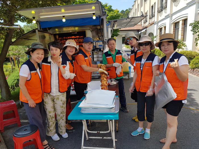 신상일 통닭봉사 회장은 “더운 날씨에 통닭기계를 작동하는 게 다소 힘들었지만 맛있게 먹는 아이들의 모습에서 행복과 보람을 느낀다.“고 말했다.