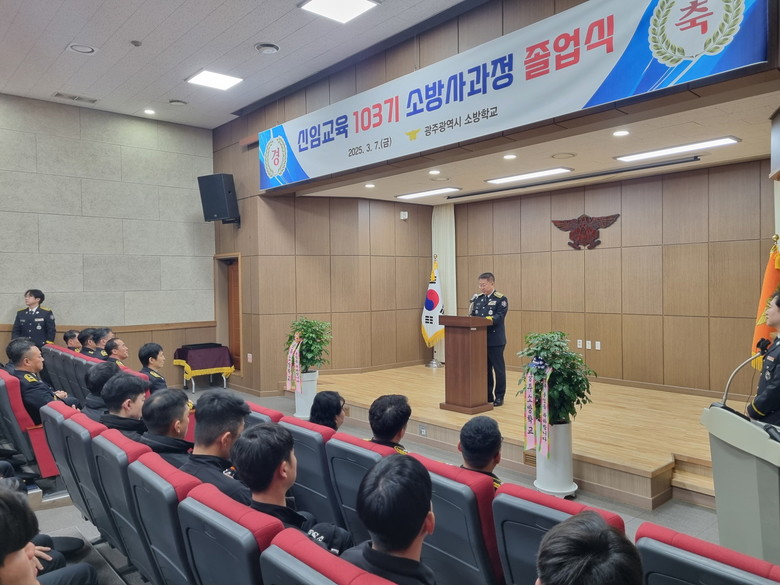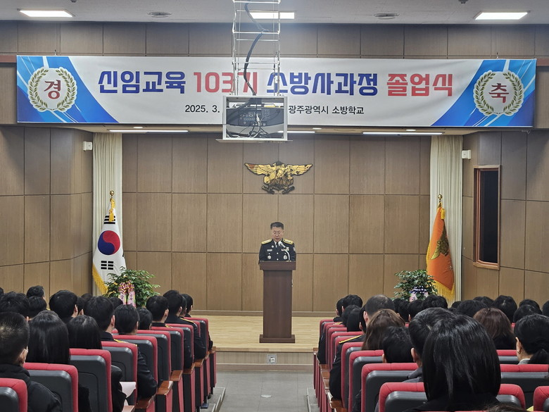 [광주 세계타임즈=손권일 기자] 광주광역시소방학교는 7일 소방학교 대강당에서 제103기 신임교육 소방사 과정 교육생 졸업식을 개최했다.
