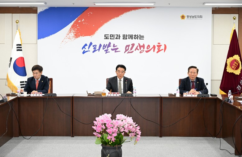 [경남 세계타임즈=최성룡 기자] 경상남도의회 확대의장단(의장 최학범)은 11일 의정회의실에서 의장단 회의를 열고, 경남도의 해빙기 취약시설 안전관리 대책 등 주요 도정현안사업에 대해 사전보고를 받고 현안을 점검했다.