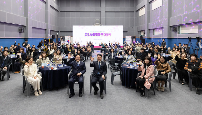 광주시교육청(교육감 이정선)은 31일 옛 경양초 부지에서 이정선 교육감, 문인 북구청장, 교사 대표 등이 참석한 가운데 ‘교사성장마루 개관식’을 개최했다. 개관식은 교사연구회가 제작한 홍보영상 상영, 교사들로 구성된 보컬팀 축하공연, 축하 퍼포먼스 등 순으로 진행됐다.
