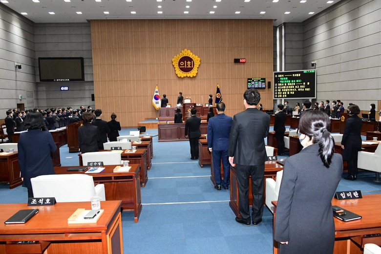 한편, 이날 정례회에서는 ▲박수기 의원, ‘일제강점기 유적 발굴, 보존, 관리를 위한 지원 체계 마련’ ▲이귀순 의원, ‘광주 대안교육기관 운영 지원 방향 재고하라!’라는 주제로 5분 자유발언이 이어졌다.