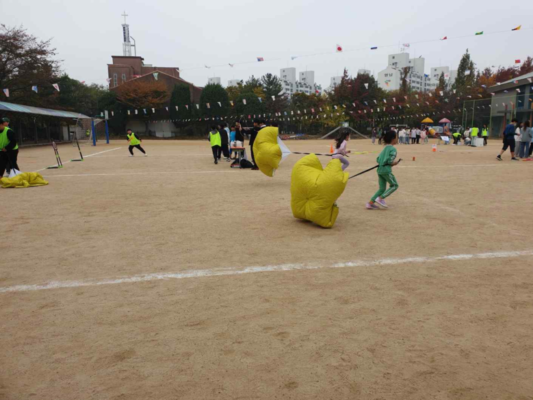 야외놀이마당(낙하산 달리기, 만보계 댄스 배틀 등 18종)과 실내체험마당(굴리는 피구, VR체험 등 8종), 더불어 함께 체험마당(떡메치기, 고민타파!스트레스타파! 등 학부모, 지역사회 연계 8종) 등 총 34개의 다양한 부스가 학교 곳곳에서 운영되어 학생들이 체험한마당을 즐겼다.