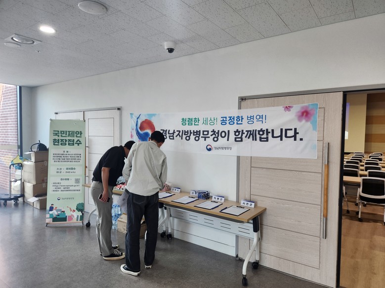 국민제안제도와 관련해서 병무정책 개선에 대한 의견은 경남지방병무청 방문(현장) 또는 우편으로 제출할 수 있고, 국민신문고 누리집(www.epeople.go.kr)를 통해서도 접수 가능하다.