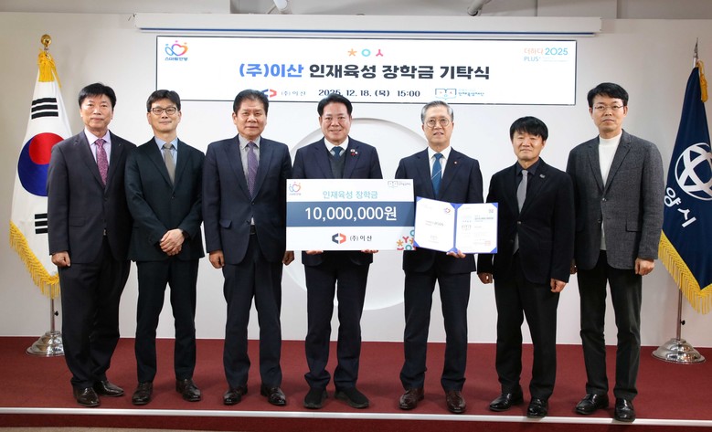 최대호 이사장은 “㈜이산의 따뜻한 나눔에 깊이 감사드린다”며 “기탁해주신 소중한 장학금이 우리 지역 학생들의 학업과 미래 설계에 실질적인 도움이 될 수 있도록 하겠다”고 밝혔다.