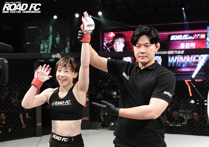 홍윤하는 “늘 같은 마음으로 최대한 운동하려고 노력하고 있다. 절대 거만해서는 안 되고, 나보다 잘하는 선수가 많다. ROAD FC 센트럴리그에서도 올라오는 선수들도 많다. 그래서 초심을 잃지 말고, 반복에 지치면 안 된다. (타이틀전 기회가 온다면) 우상인 그 분(함서희)과 경기할 수 있는 실력이 되어야 하는 게 우선이라고 생각한다. (함)서희 언니가 ‘한 번 해봐도 되겠네’라고 인지할 수 있을 정도가 되도록 열심히 노력하겠다”며 아직 실력이 부족하다는 뜻을 전했다.