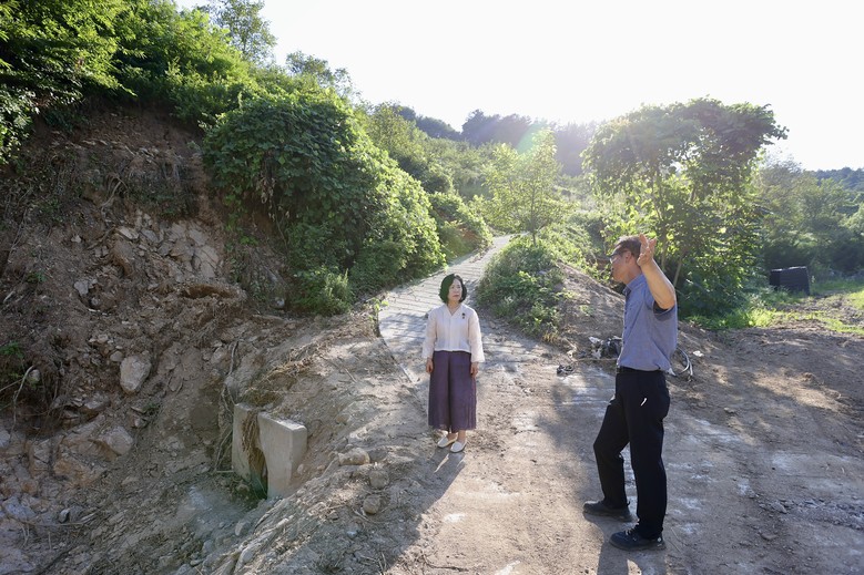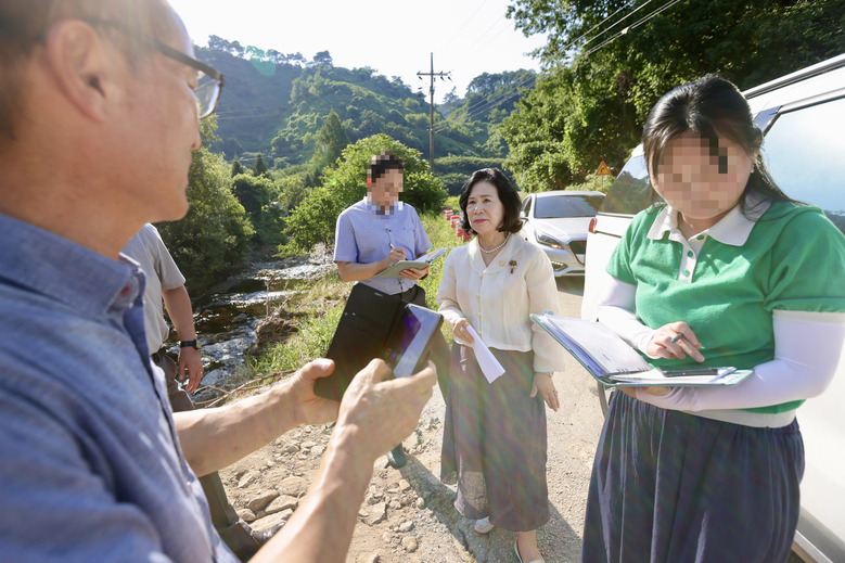 [천안시 세계타임즈=이현진 기자] 천안시의회 김행금 의장은 지난 29일(화), 최근 극한 호우로 큰 피해를 입은 광덕면 일대 주요 수해 복구현장을 방문했다. 김 의장은 광덕면 지장리, 광덕리, 대평리 등 침수 및 산사태 피해지역을 직접 돌며 복구상황을 점검하고, 이건영 광덕면장 등 관계자들과 향후 복구계획 및 추가 지원사항을 논의했다.