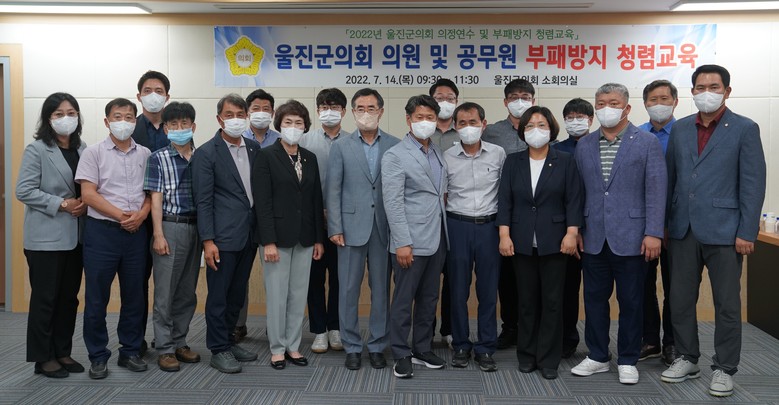 [울진군 세계타임즈=한성국 기자] 울진군의회(의장 임승필)는 2022년 7월 14일 울진군의회 소회의실에서 의원과 의회사무과 직원을 대상으로 「의정연수 및 부패방지 청렴교육」을 실시하였다.