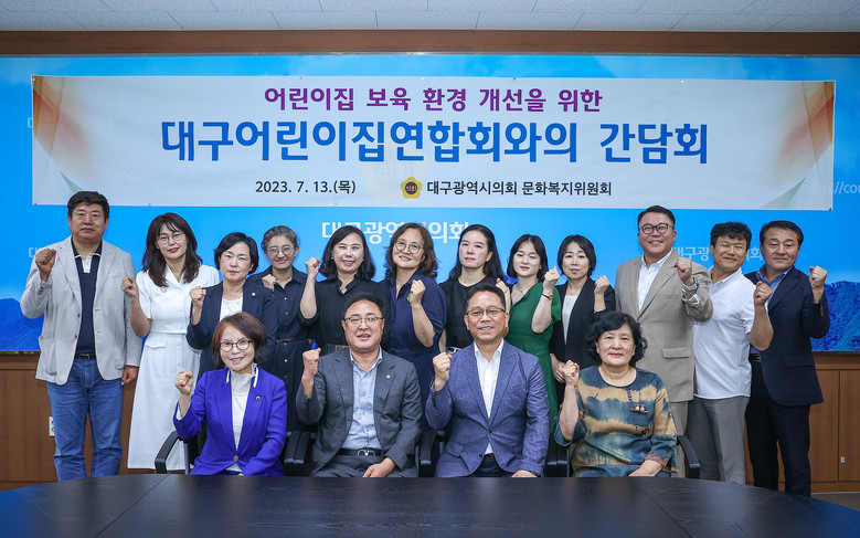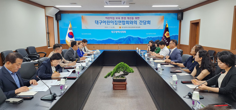 [대구 세계타임즈=한성국 기자] 대구시의회 문화복지위원회(위원장 김재우)는 7월 13일(목) 오후 4시 시의회 2층 간담회장에서 대구어린이집 연합회장 등 관계자 9명, 대구시 출산보육과장 등이 참석한 가운데 지역 어린이집 보육 환경 개선을 위한 주요 현안과 애로사항을 청취하고 개선 방안을 논의하는 시간을 가졌다.