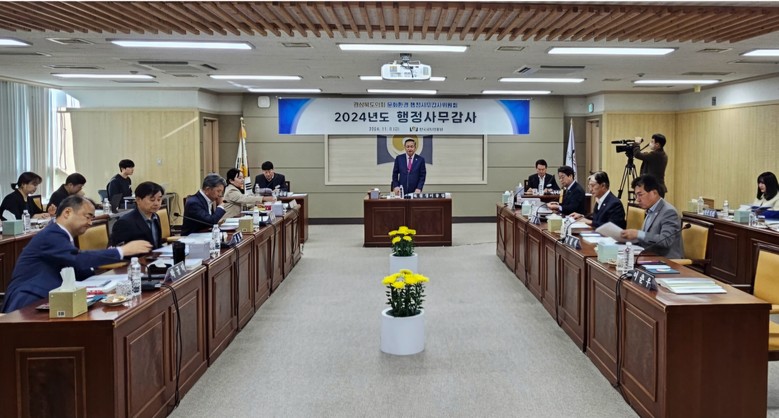 [경북 세계타임즈=한윤석 기자] 경상북도의회 문화환경위원회(위원장 이동업)는 11월 8일 한국국학진흥원 2024년도 행정사무감사를 실시했다. 이날 위원들은 2024년 주요업무 추진상황과 2025년 주요업무계획을 보고 받고 재무제표 및 회계관리, 국학진흥원의 국학 연구와 전통기록유산 소장과 관련한 심도 있는 질의를 이어갔다.