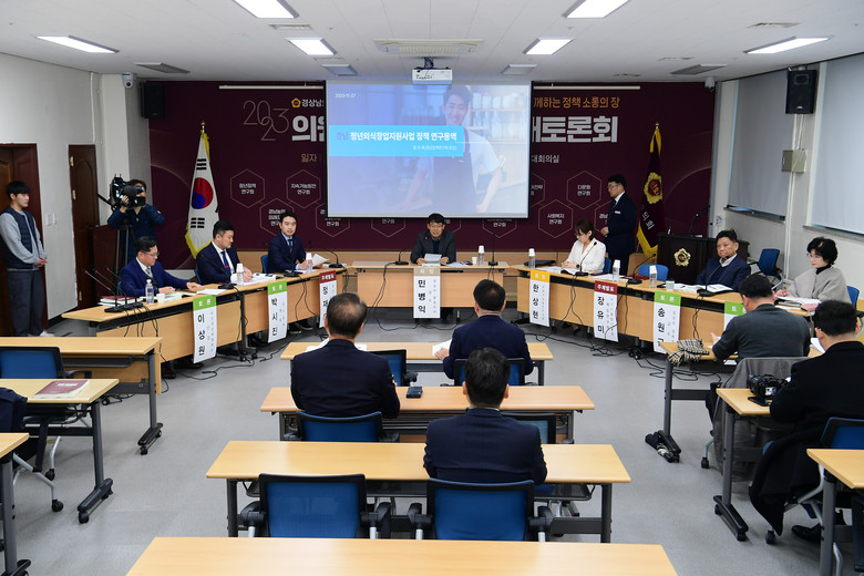 [경남 세계타임즈=최성룡 기자] 경상남도의회(의장 김진부)는 12월 11일 경상남도의회 대회의실에서 「2023 의원 연구단체 정책 대토론회」개회식을 갖고, 올해 의원 연구단체에서 추진한 17개 과제에 대해 양일간 7개의 세션 토론회를 개최한다.