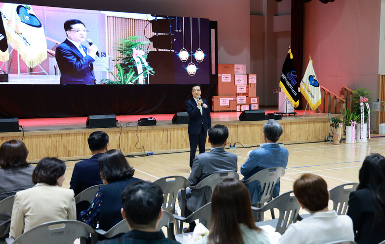 [대전 세계타임즈=이채봉 기자] 대전시의회 조원휘 의장은 18일 유성종합스포츠센터에서 개최된 제45회 장애인의날 및 유성구장애인종합복지관 개관 20주년 기념행사에 참석해 장애인의 사회적 관계망 강화와 자립능력 향상을 위한 관심과 지원을 약속했다.