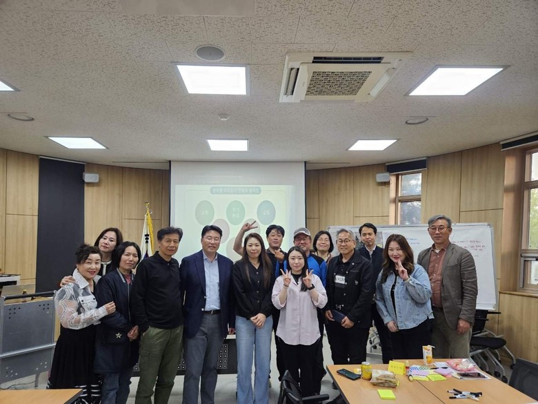 | ▲ 수원시 영통구 원천동 주민들로 구성된 자치계획수립단이 회의 후 기념촬영을 하고 있다. |