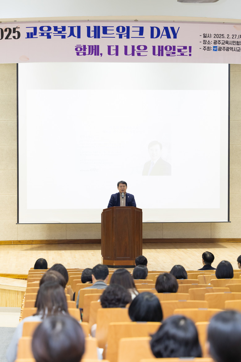 [광주 세계타임즈=손권일 기자] 광주시교육청(교육감 이정선)은 27일 광주교육시민협치진흥원 대강당에서 교육복지우선지원 및 교육복지안전망 학교를 대상으로 ‘2025 교육복지우선지원사업 교육복지 네트워크 DAY-함께 더 나은 내일로’ 행사를 개최했다.
