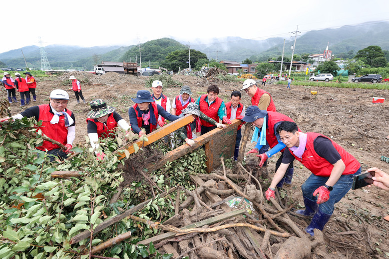 예천군 감천면 벌방리 복구작업에 참여한 배한철 의장, 이칠구 운영위원장, 김대일 문화환경위원장, 윤승오 교육위원장 등 도의원들과 직원들은 가재도구 세척, 토사작업, 폐기물 처리 등 피해복구 작업에 힘을 보탰으며, 이재민들이 빠른 시일 내 일상으로 복귀할 수 있기를 기원했다.
