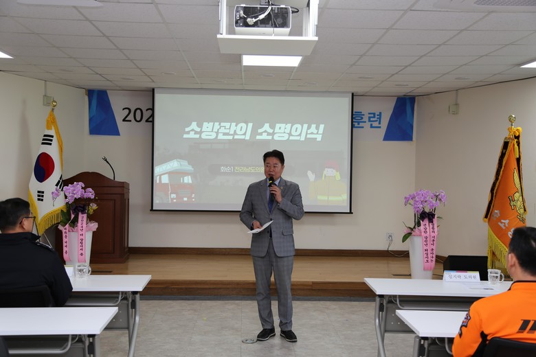 [전남 세계타임즈=우덕현 기자] 전라남도의회 임지락 의원(더불어민주당, 화순1)은 지난 3월 6일 화순소방서에서 열린 ‘2024년 직장교육훈련’ 강사로 초빙되어 ‘소방공무원의 소명의식’에 대해 특강을 진행했다.