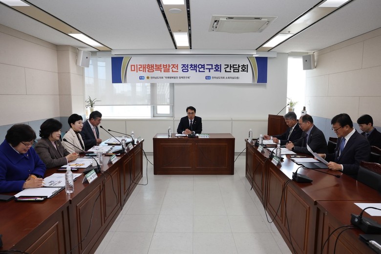 [전남 세계타임즈=우덕현 기자] 전라남도의회 의원 연구단체인 ‘미래행복발전 정책연구회(대표의원 송형곤)는 12일 전라남도의회 소회의실에서 간담회를 개최했다.