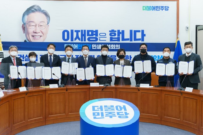 [세계타임즈 심귀영 기자]이수진 의원(더불어민주당 민생연석회의 노동분과장, 비례대표)은 오늘 14일(화) 오후 2시 더불어민주당 당대표실에서 ‘건설업 적정임금제 확산을 위한 상생협약식’을 주관하였다.