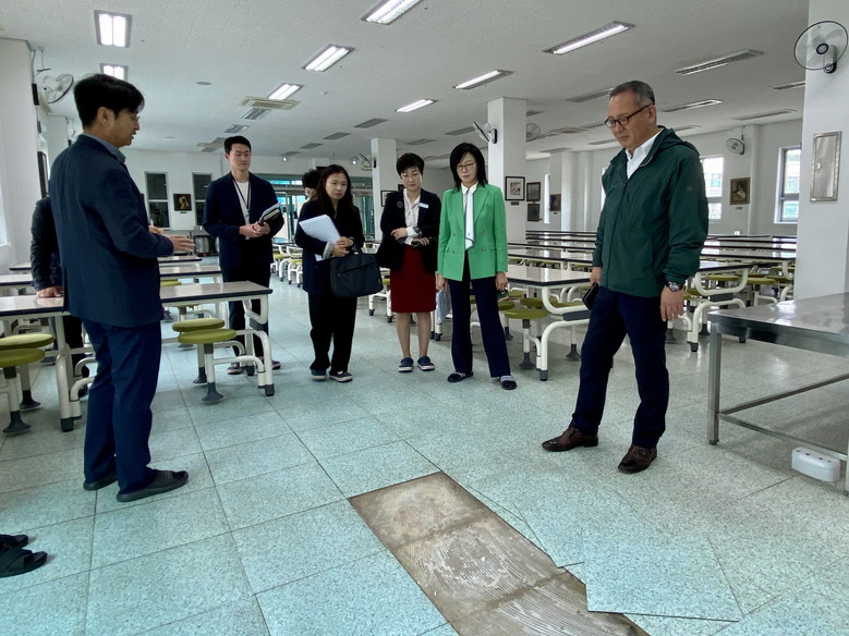 현장에는 창원교육지원청 체육건강과 김도연 과장을 비롯한 경남도교육청 교육복지과 김미정 사무관, 조동열 학교운영위원장 마산지역협의회장 등이 참석하여 함께 학교시설을 살폈으며 이후 간담회를 통해 현안에 대한 논의가 이어졌다.