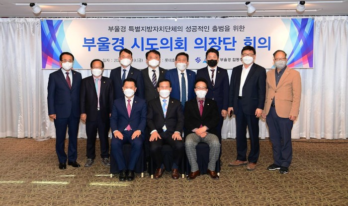 부울경 특별지방자치단체 합동추진단(이하 합동추진단)은 11월 19일 오전 11시 부산 롯데호텔에서 부울경 시도의회 의장단 회의를 개최하였다.