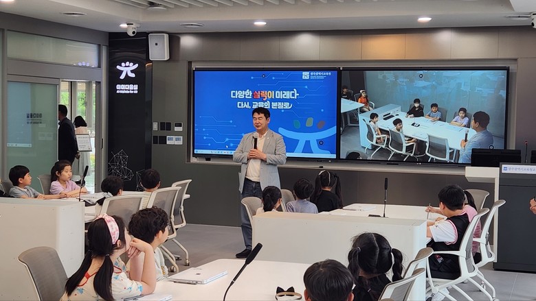 이날 학생들과 함께 디지털 기반 수업을 체험한 이정선 교육감은 “광주는 전국에서 최초로 AI 교육원을 설립하고, 미래사회 변화에 대응할 수 있는 미래교육 환경 구축에 속도를 내고 있다”며 “교사와 학생이 미래교실의 주체가 되어 함께 성장할 수 있도록, 적극 지원하겠”고 말했다.