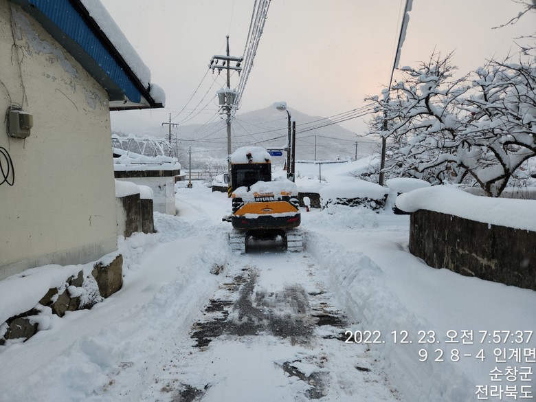 한편, 순창 지역에는 22일부터 24일까지 평균 43.6cm의 적설량을 기록했으며, 최고 쌍치면 67.7cm, 최저 유등면 28.5cm가 내렸다. 이로 인해 하우스 파손 156동 6.4ha, 작물피해 3.2ha, 축사 8동 4,804㎡, 퇴비사가 3동 1,273㎡가 피해를 입은 것으로 조사됐다.