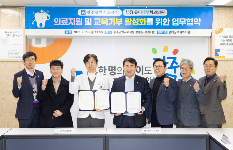 [광주 세계타임즈=손권일 기자] 광주시교육청(교육감 이정선)과 유디상무치과의원이 사회적 배려 학생에 대한 의료지원을 위해 손을 맞잡았다.