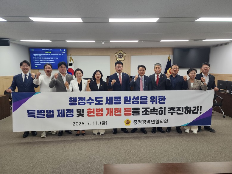 충청광역연합의회는 “행정수도 완성은 수도권 과밀 해소와 국가 균형발전을 위한 중대한 국가적 과제이며, 더 이상 미룰 수 없는 시대적 요청”이라고 강조하며, “정부와 국회가 지방 소멸 등의 국가적 위기를 극복하고 대한민국의 지속가능한 성장을 위해 과감한 결단과 함께 속도감 있는 입법을 추진할 것으로 기대한다”고 밝혔다.