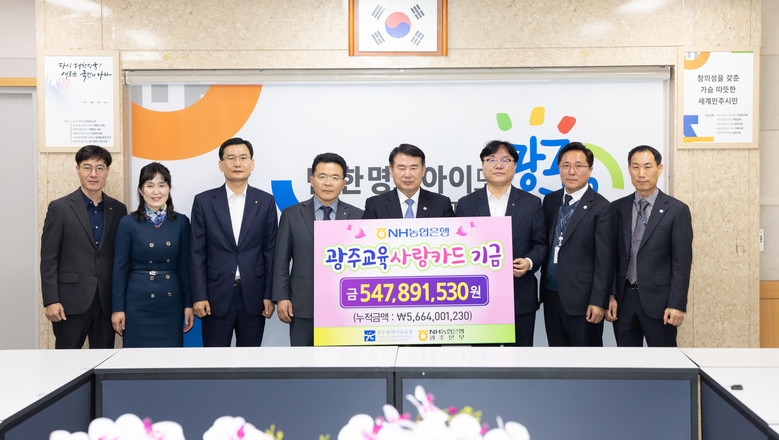 [광주 세계타임즈=손권일 기자] 광주시교육청(교육감 이정선)은 24일 본청 상황실에서 NH농협은행으로부터 지난해 광주교육사랑카드 적립금 5억4천789만 원을 전달받았다.