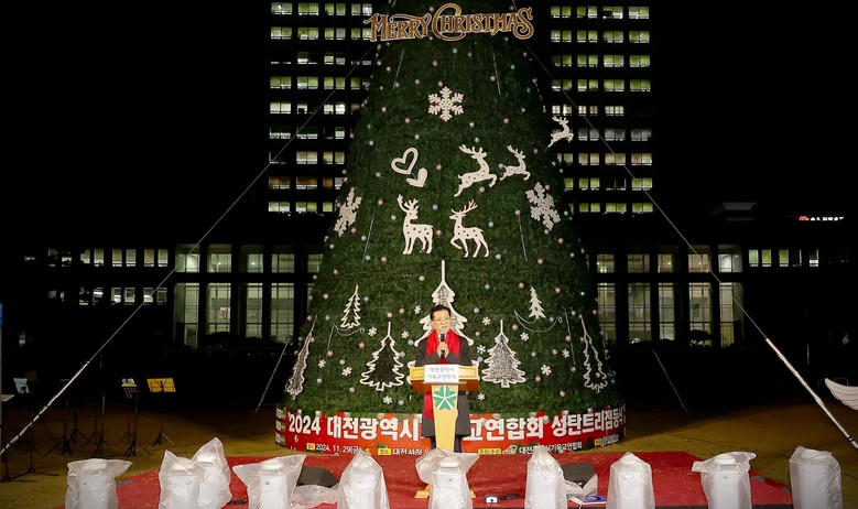 [대전 세계타임즈=이채봉 기자] 대전시의회 조원휘 의장은 29일 시청 남문광장에서 열린 ‘2024년 성탄트리 시민한마음 예술제 점등식’에 참석해 “겨울밤을 환하고 따뜻하게 밝히는 트리 불빛이 곳곳에 퍼져 대전 시민 모두가 행복한 연말연시가 되길 바란다”며 행사 개최를 성원하고, “대전시의회는 트리 불빛처럼 사회 그늘진 곳을 밝히기 위해 열심히 뛰겠다”고 약속했다.