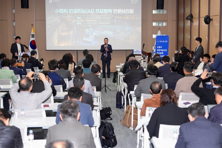 수원시는 3월 31일 수원시의회 다목적라운지에서 ‘수원시 인공지능(AI) 주요 정책 언론브리핑’을 열고, 수원시의 인공지능 정책을 소개했다.