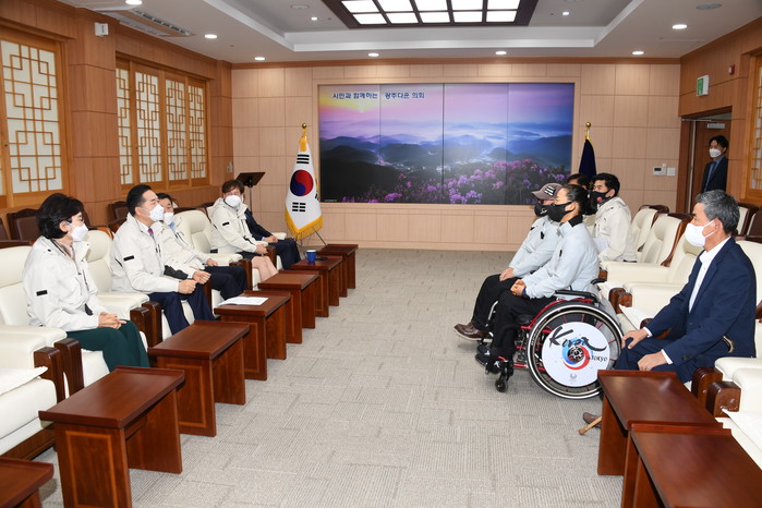 [광주=세계타임즈 손권일 기자] 광주광역시의회(의장 김용집)는 18일 광주광역시의회 열린시민홀에서 제41회 전국장애인체육대회에 출전하는 광주시 선수단을 격려하며 광주의 위상을 높여 달라고 당부했다.
