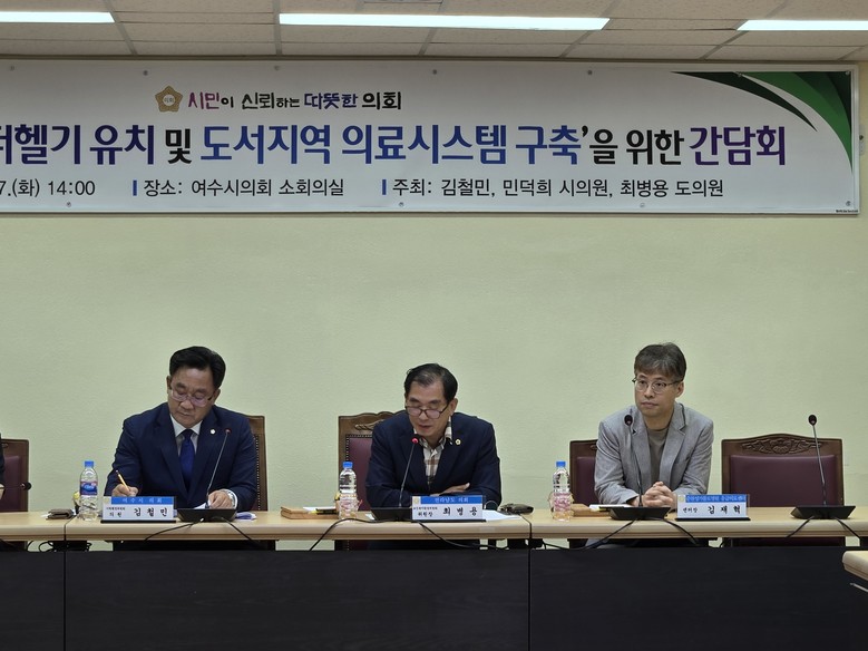 이날 간담회는 최병용 전남도의원ㆍ김철민 여수시의원이 공동좌장을 맡아 진행하였으며, 전남도 건강증진과ㆍ식품의약과, 여수시 섬발전지원과와 보건소 등 관계자 50여 명이 참석했다.