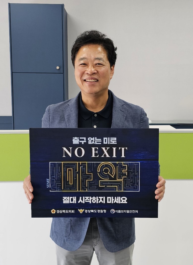[경북 세계타임즈=한성국 기자] 경상북도의회 이춘우 기획경제위원장이 6월 7일 마약 퇴치 릴레이 캠페인인 ‘노 엑시트(NO EXIT)’ 캠페인에 동참했다.