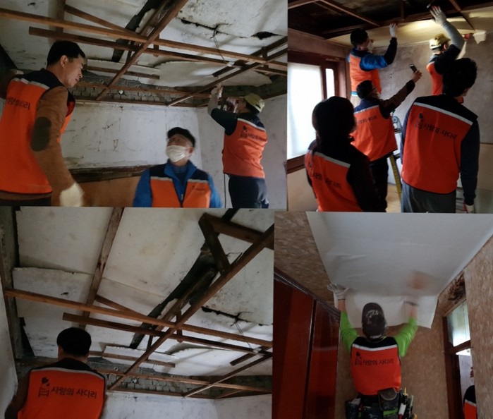 김준민, 김태우, 방치석, 천정훈 등 각 분야의 전문가 회원들이 중심이 되어서 자원봉사자 20명과 함께 3일 동안에 집수리 봉사를 마무리 하였다.