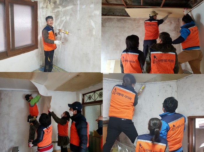 이날 집수리 봉사는 3일 동안에 옥상 방수 공사, 안방과 작은방 거실 등 도배 및 장판 교체, 전기등 교체, 페인트 도색 봉사로 집수리 봉사를 하였다.