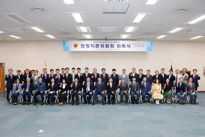 [부산 세계타임즈=이용우 기자] 부산광역시의회는 제9대 전반기 의정자문위원회를 새로이 구성하여, 오는 10월 6일 오전 11시 부산광역시의회 2층 대회의실에서 위촉식을 개최한다.